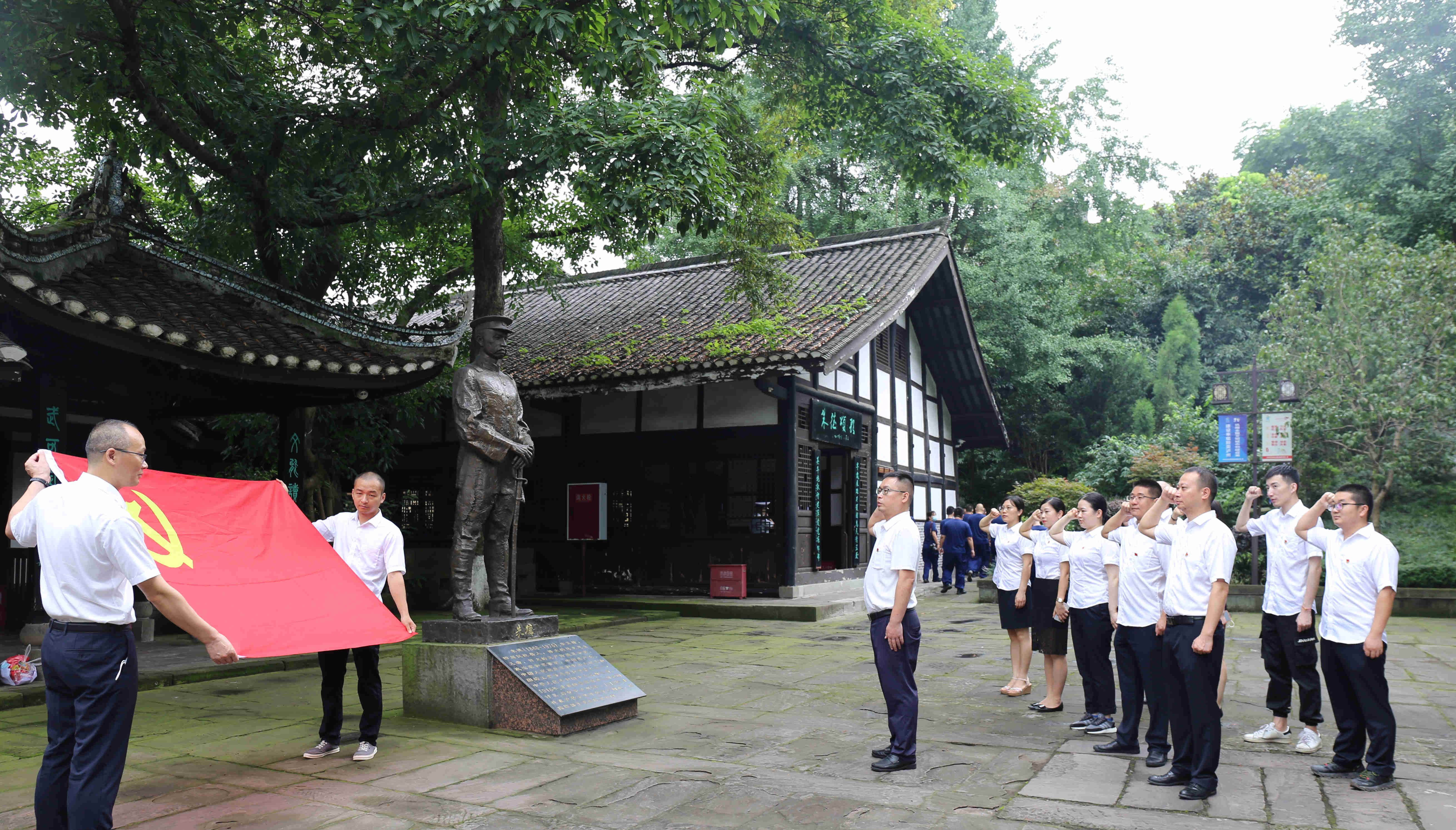 興綠園林公司黨支部在況場朱德舊居陳列館組織開展了慶祝中國共產(chǎn)黨成立99周年主題教育活動?;顒訁⒂^了朱德舊居陳列館,聆聽了朱德在瀘州期間戰(zhàn)斗、生活情況介紹,深入了解了朱德在瀘州革命的豐功偉績和生平事跡。在朱德銅像前,支部書記黃修華帶領(lǐng)預備黨員余洪波進行了入黨宣誓,隨后全體黨員、預備黨員重溫了入黨誓詞。最后,黨員同志還在朱德舊居陳列館參與了打掃衛(wèi)生、測量體溫和維持參觀秩序等黨員志愿服務活動。