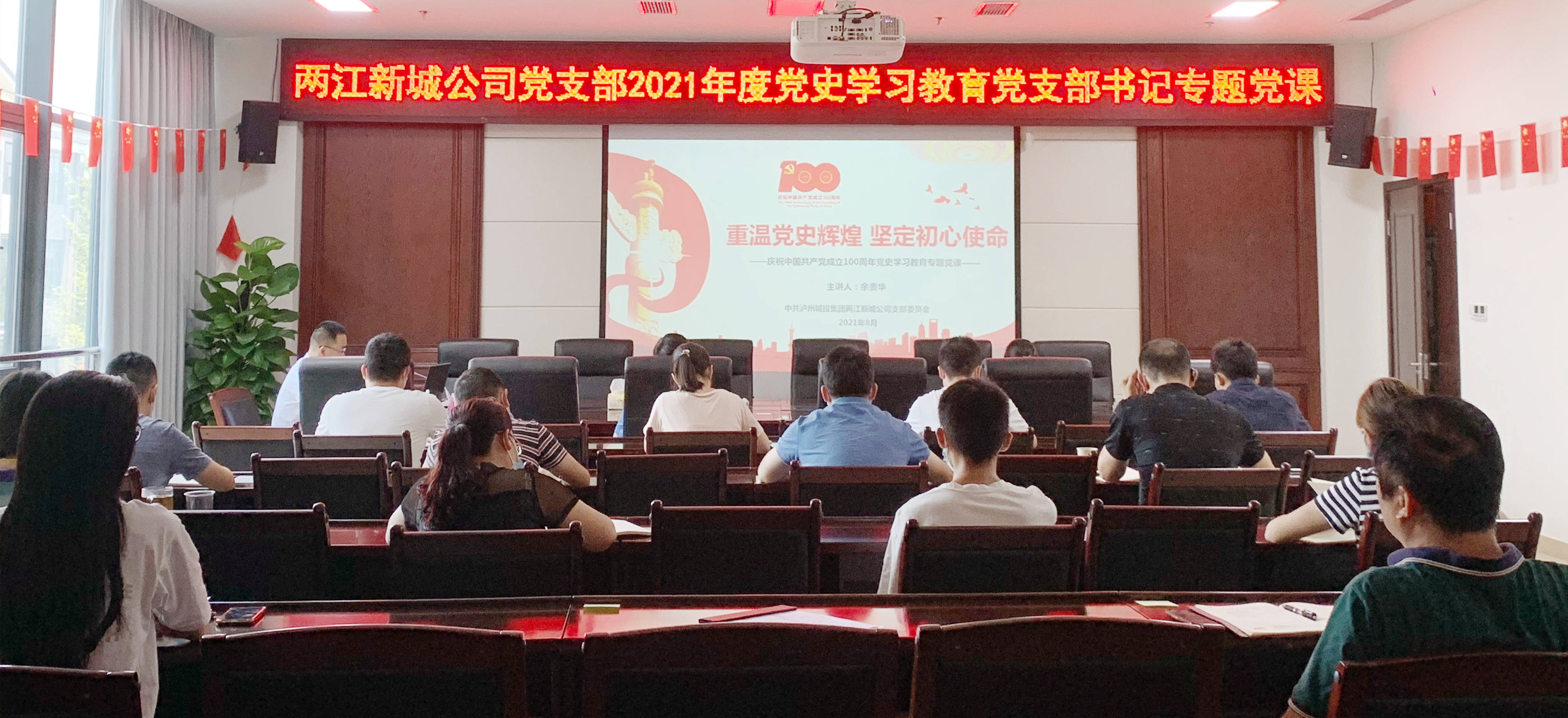 8月6日,兩江新城公司黨支部書(shū)記余貴華以《重溫黨史輝煌 堅(jiān)定初心使命》為題講授黨史學(xué)習(xí)教育專題黨課。此次黨課學(xué)習(xí)嚴(yán)格落實(shí)防疫工作要求,與會(huì)人員佩戴口罩間隔一米落座。
