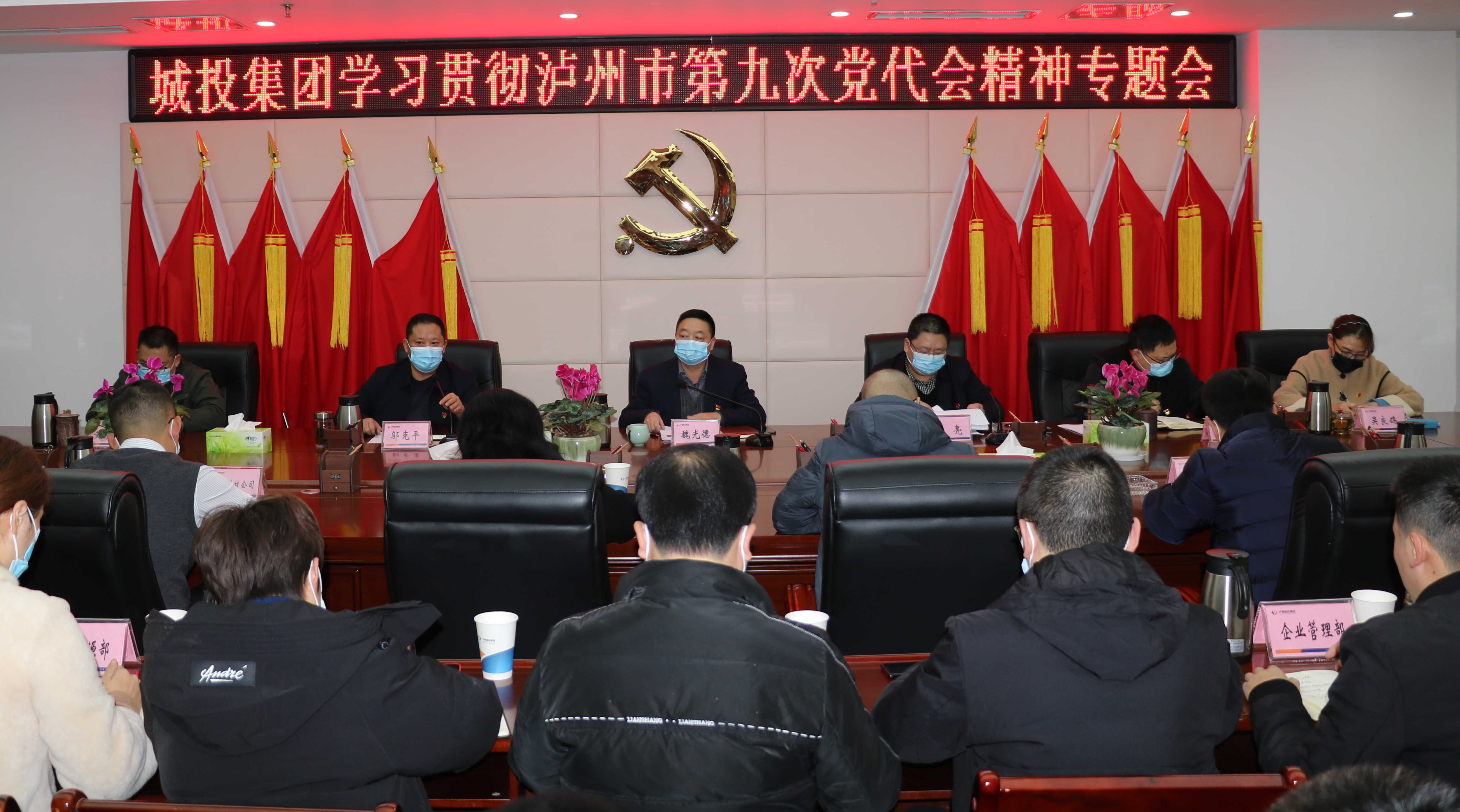 11月23日,集團黨委書記、董事長魏光德主持召開學習貫徹瀘州市第九次黨代會精神專題會,傳達學習瀘州市第九次黨代會精神,研究部署城投集團貫徹落實黨代會精神有關工作。集團領導班子成員、全體中干,各子公司高管參加會議。