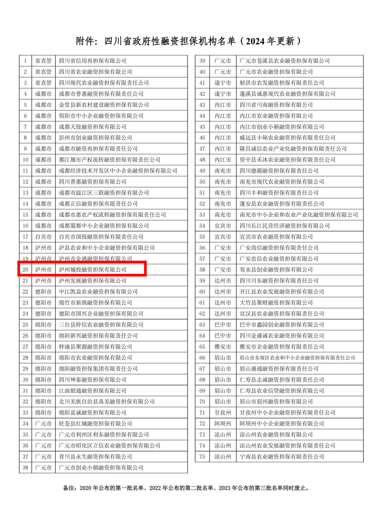 4月9日,《四川省政府性融資擔(dān)保機(jī)構(gòu)名單》(2024年更新)發(fā)布,瀘州市城市建設(shè)投資集團(tuán)有限公司(以下簡稱瀘州城投集團(tuán))下屬瀘州城投融資擔(dān)保有限公司(以下簡稱融資擔(dān)保公司)被確認(rèn)為四川省政府性融資擔(dān)保機(jī)構(gòu)。