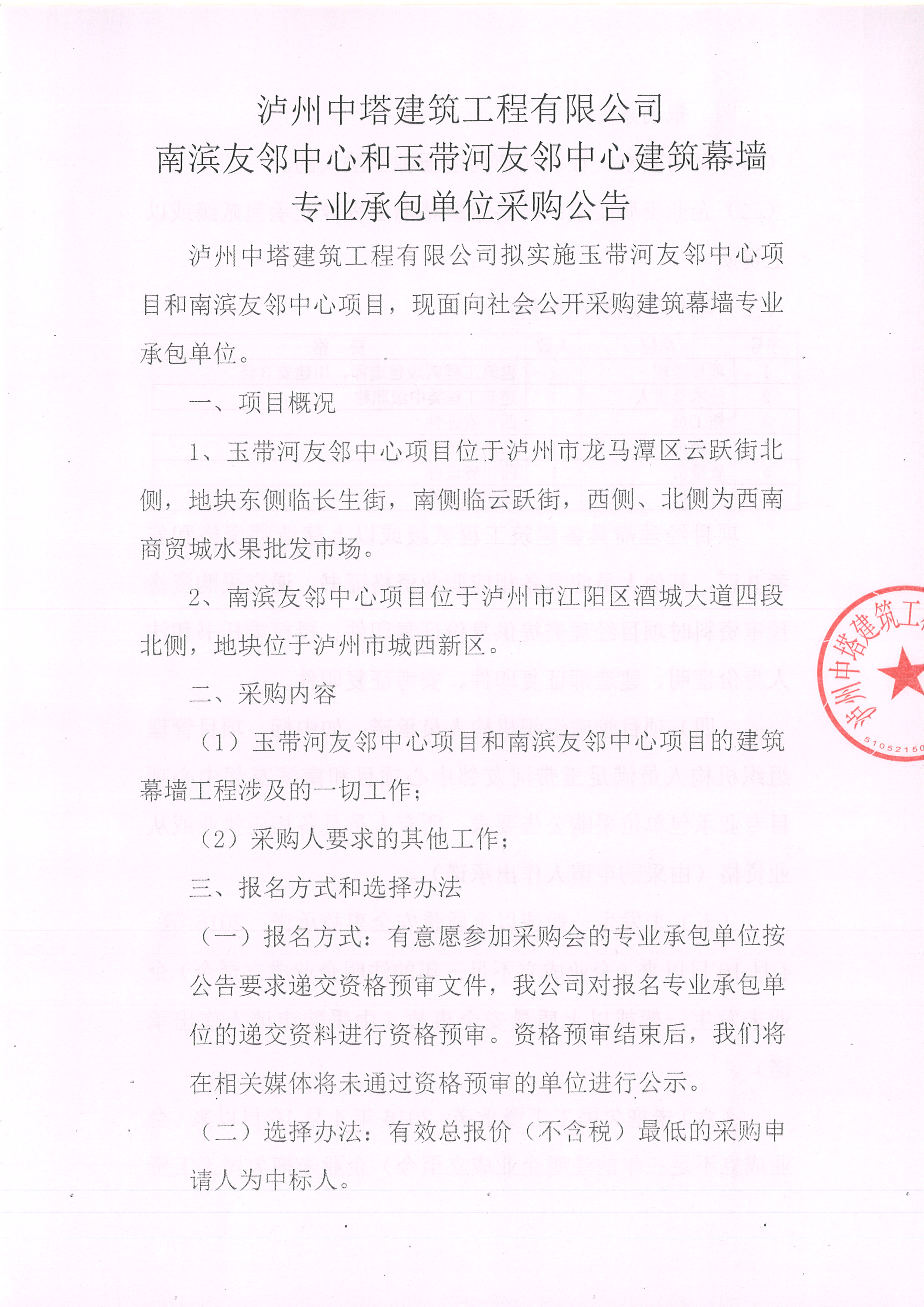 南濱友鄰中心和玉帶河友鄰中心建筑幕墻專業(yè)承包單位采購公告