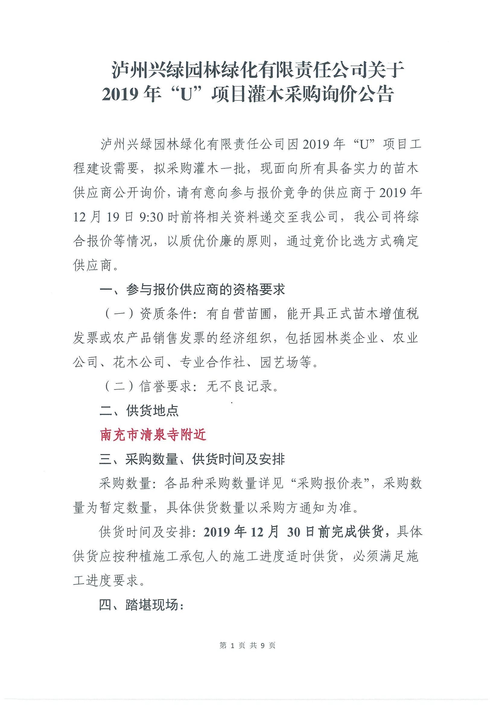 2019年“U”項(xiàng)目灌木采購詢價(jià)公告