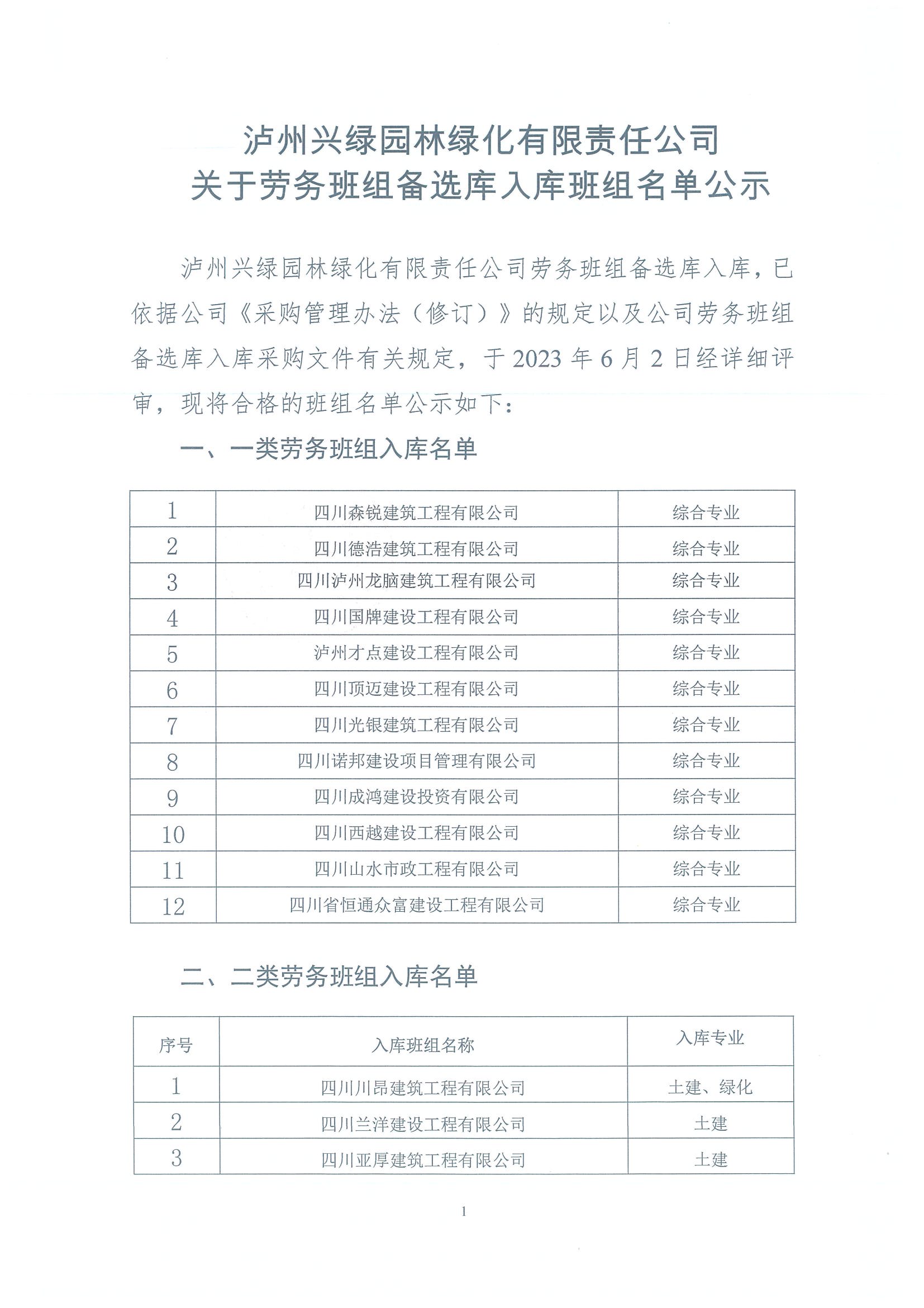 興綠園林公司勞務(wù)班組備選庫入庫班組名單公示