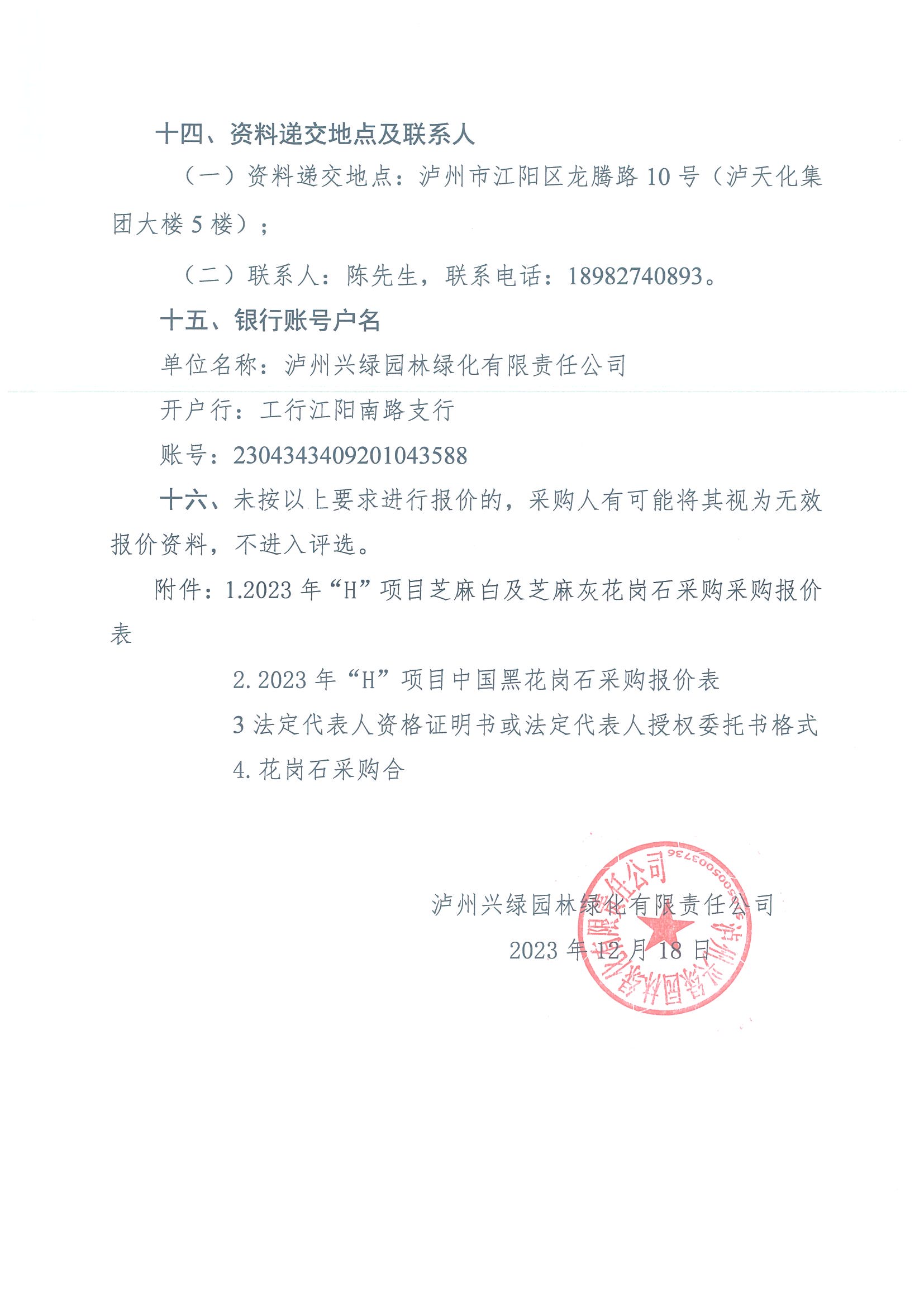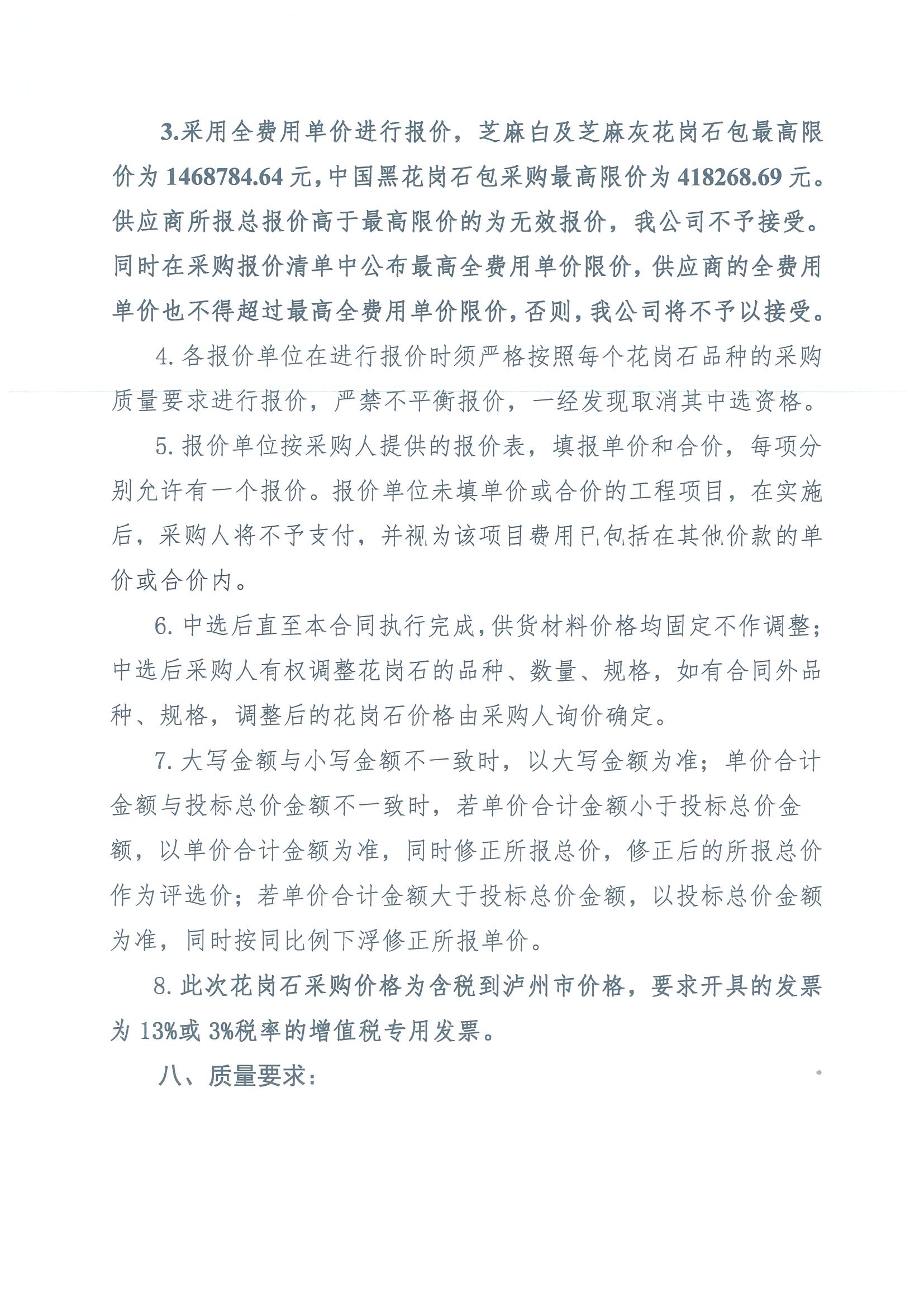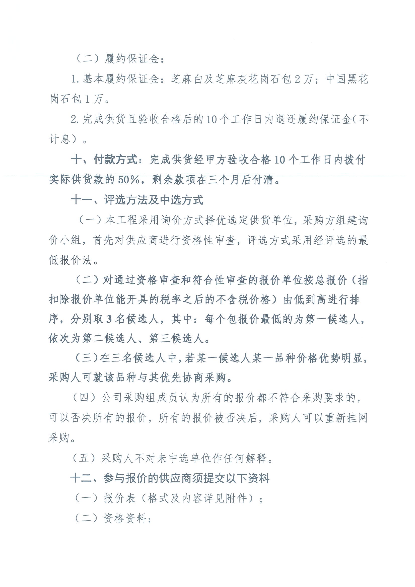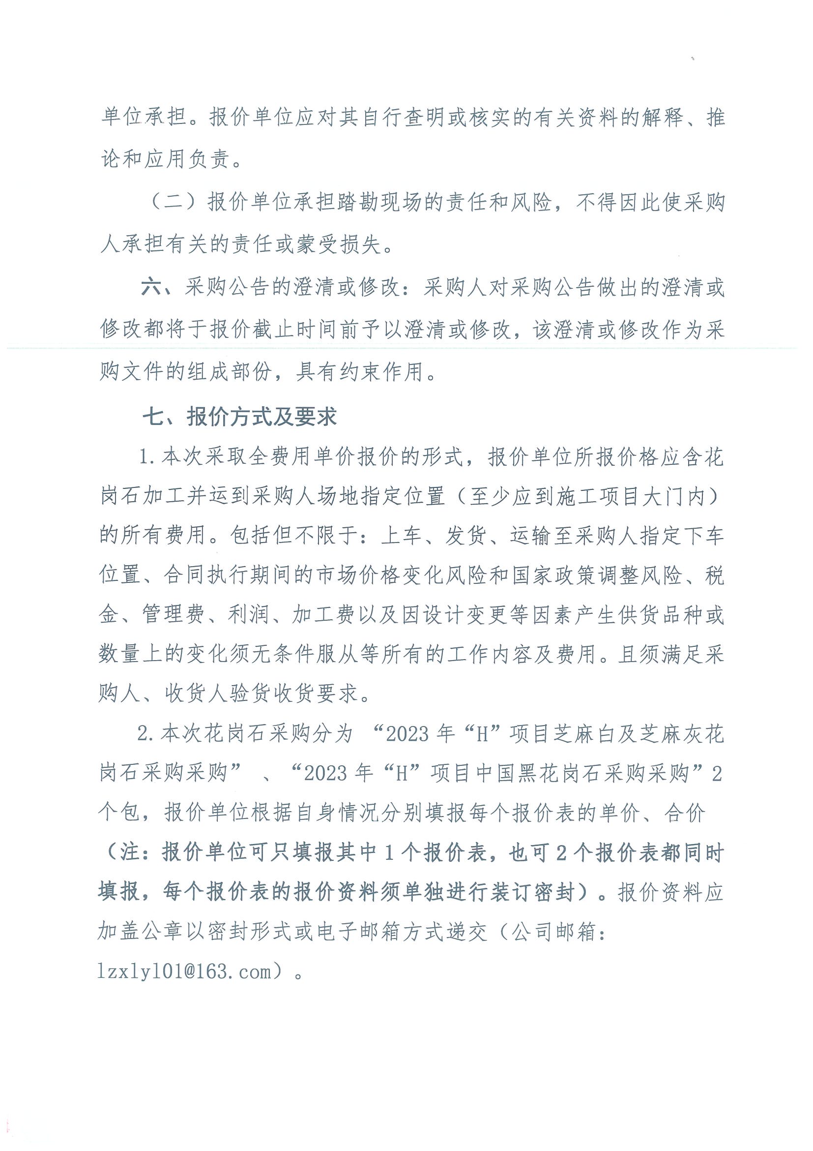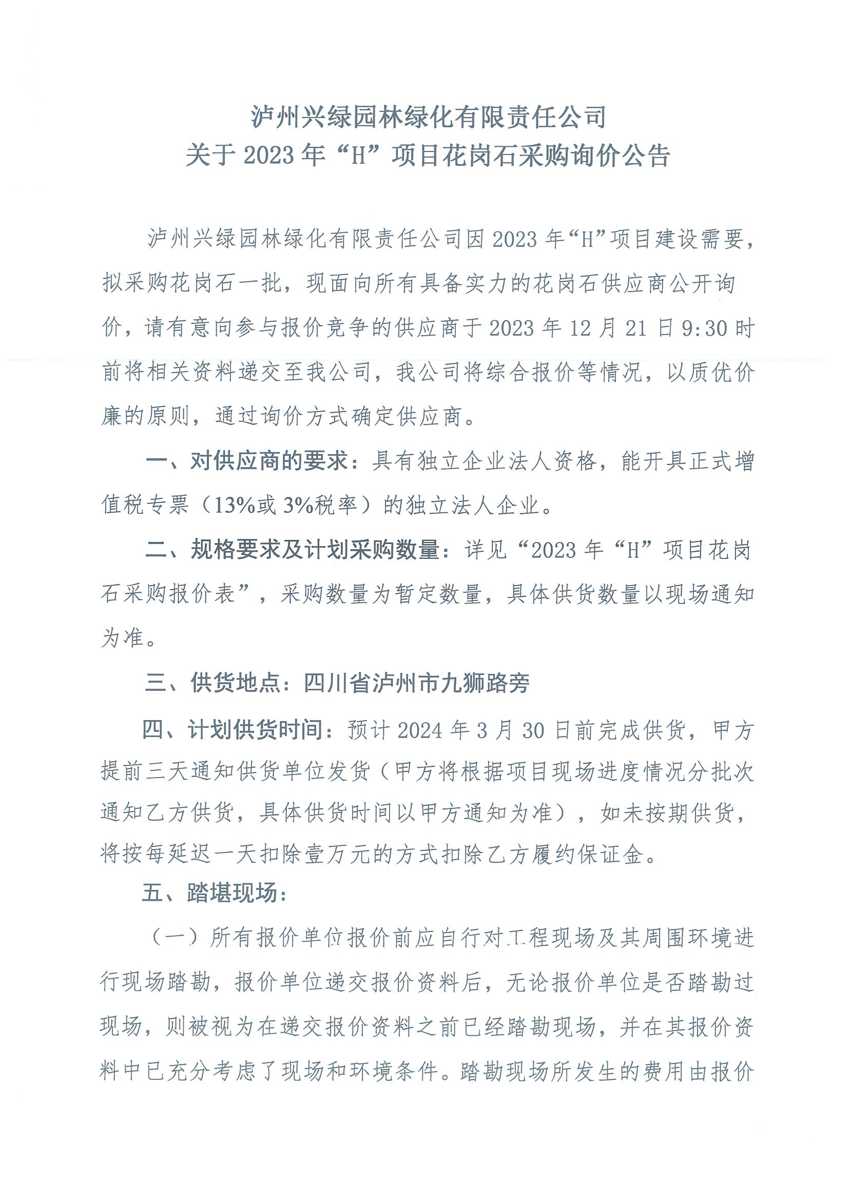 2023年“H”項(xiàng)目花崗石采購(gòu)詢價(jià)公告